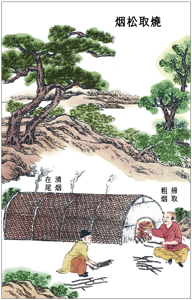 铜绿(至绿色,黄铜打成板片,醋涂其上,裹藏糠内,微藉暖火气,逐日刮取)