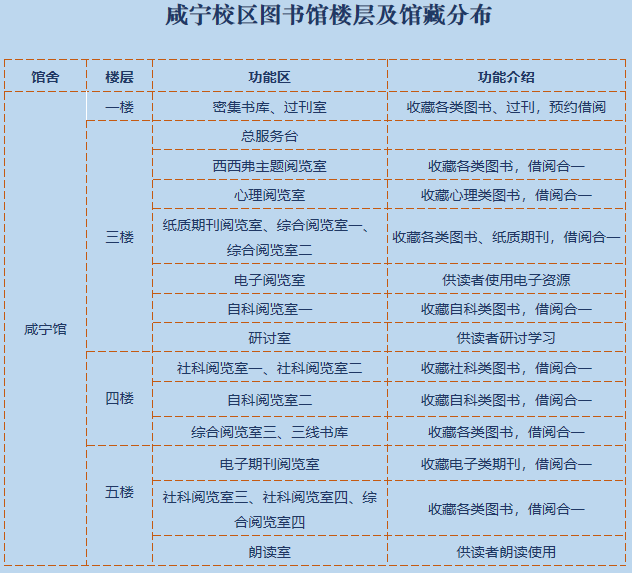 咸宁校区图书馆楼层及馆藏分布