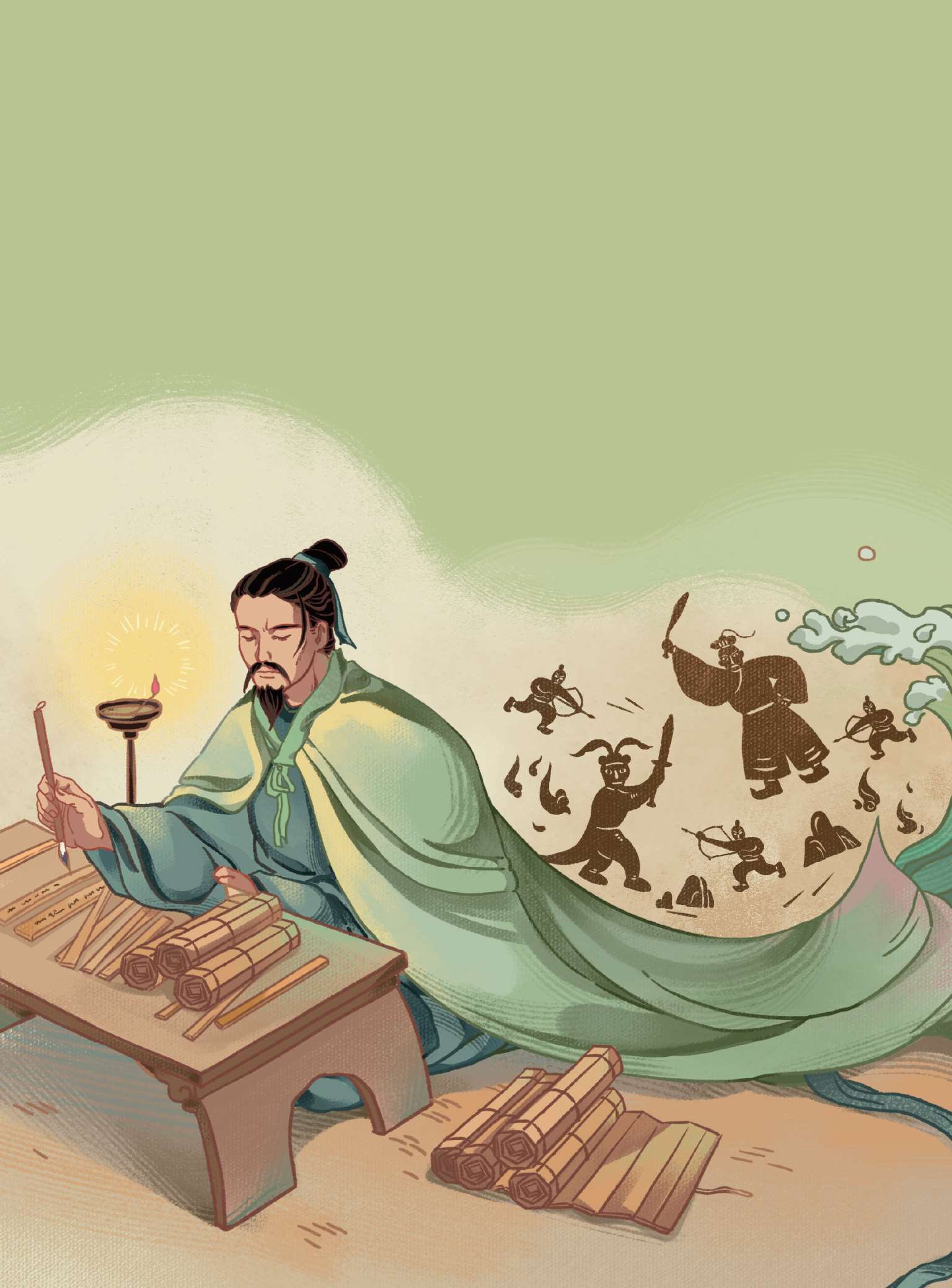 司马迁踮脚远望,陷入了深思。其实,他六岁时,便跟随父亲苦读诗书,精通《左传》《国语》,又熟知诸子百家,连《禹本纪》《山海经》之类的书都曾观览。