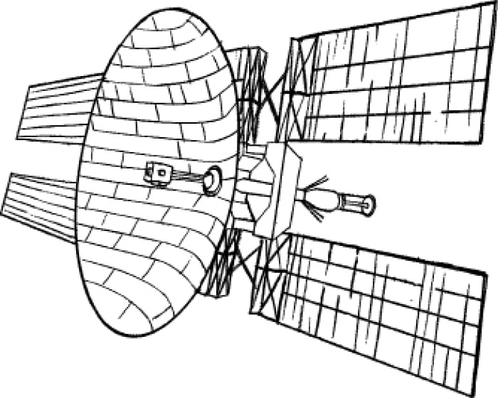 三个人沿着一条螺旋形的自动阶梯不断下探。一架庞然大物在灯下自信地展示着自己的肋架。而在精巧的盒子形状的船头后方,一块弧度平缓、勺状弯曲的金属片肆无忌惮地张开。在它的后方连接着圆润的子弹形的船身,从躯干部分延伸出四块巨大的格栅板,足有数公里长。船尾则挂着一个细颈瓶状的装置。