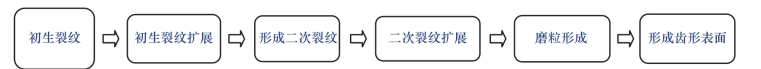 航空发动机的齿轮副、轴承、球头等经常发生表面疲劳磨损。表面疲劳磨损流程如图1-3-11所示。