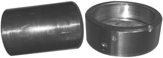 (1)微动磨损。两接触固体彼此以极小振幅的振动方式做相对运动而造成的磨损称为微动磨损。微动磨损是合成磨损的一种,也是四种基本磨损叠加而成的复杂磨损过程。航空发动机的微动磨损,可发生在各种固定接头和结合面。主要的影响是引起零件咬合松动、功率损失和噪声增加等,也会加速疲劳裂纹的产生,从而降低零件的疲劳寿命。微动磨损造成的表面损伤特点是疲劳裂纹和产生微动磨屑。由于微动的结果,疲劳强度常常降低到原来的1/6~1/3,图1-3-16所示为发生微动磨损的零件。微动磨损的发生主要有三个阶段:第一阶段,由振动接触变形导致表面裂纹的产生和扩展、表面污染物的排除以及黏附结合的形成与断裂;第二阶段,由于表面疲劳或黏附,变形过程中形成微粒摩擦,磨损微粒在摩擦化学反应中被氧化;第三阶段,已经生成的磨损微粒的研磨作用加速了第一阶段的进程。
