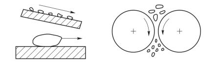 工业上,磨粒磨损十分普遍,约有50%的磨损是磨粒磨损。在给定的磨损范围内,金属的磨粒磨损体积V在大多数情况下随荷载F及滑动距离按线性关系增加。磨粒磨损取决于磨粒硬度和零件材料硬度间的相互关系,磨粒磨损的耐磨性与材料硬度呈正比。为减少磨粒磨损,零件材料的硬度应比磨粒硬度高一定系数。磨粒磨损过程作用在外表面层,分析磨损时应考虑表面污染和环境的影响。磨粒硬度对金属磨损可分为下面三种状态: