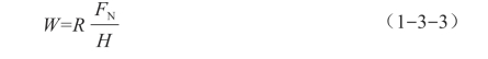 (2)磨损率W与表面接触面积无关,它正比于法向荷载FN而反比于材料的硬度H,如式(1-3-3)所示。