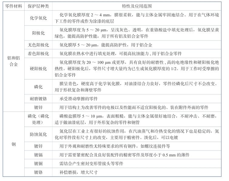 如果采用硬阳极化处理还能提高表面的耐磨性。阳极化可分为四种:硫酸阳极化、铬酸阳极化、硬阳极化和装饰性阳极化。硫酸阳极化是通常用的阳极化,其厚度为0.01 mm。铬酸阳极化专门用于复杂或带孔零件,它的厚度通常为0.05 mm,可形成一层美观的灰色表面。硬阳极化的抗腐蚀性是几种阳极化中最好的,它专门用于需要耐磨和耐腐蚀的零件或部件,涂层厚度为0.05~1 mm。