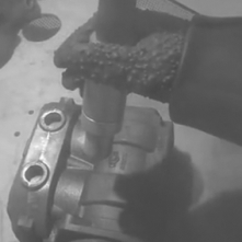喷砂是以净化的压缩空气为动力,形成高速喷射束,将喷料高速喷射到需处理的工件表面,使工件外表面的外表或形状发生变化,获得一定清洁度和不同粗糙度的一种工艺。喷砂可除掉零件表面的涂层、漆层、积炭、方向性磨痕、氧化皮、毛刺、锈蚀及熔渣等杂质,提高油漆、涂层和电镀层的附着力,也可以使零件表面产生特殊的闪光装饰效果,使工件外表更加美观,使工件表面更加平整,提高工件的光洁度,使工件露出均匀一致的金属本色。可用于需要电镀、氧化、磷化和涂覆油漆的表面预处理。对镀铬的零件喷砂,可以增加铬层的结合力。图1-4-68所示为手动式喷砂机,图1-4-69所示为手持喷砂机喷嘴准备喷零件,图1-4-70所示为砂粒高速喷出撞击零件,图1-4-71所示为喷砂后的零件。