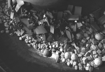 (5)振荡清洗。振荡清洗是指往振荡器里放水和清洗剂形成清洗溶液,将树脂颗粒和叶片放入振荡器,在振荡器的振动作用下,清洗剂溶解灰尘、氧化物、积炭等污垢,树脂颗粒与叶片的相互接触、碰撞加速污垢的去除,从而达到清洁的目的,如图2-3-3所示,图2-3-4所示为洗净后的叶片与清洗颗粒,可用于清洗钛合金叶片,需要注意的是,如果树脂颗粒过少,则可能碰伤叶片。根据叶片大小选择合适规格的颗粒,也具有一定的叶片抛光作用。