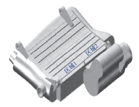 某型发动机燃-滑油散热器壳体成批次、同位置发生了裂纹故障,裂纹呈线状不开叉,如图2-10-7所示。对裂纹采取焊接方法修理后,工作远不到一个大修寿命同样的位置又发生裂纹。燃-滑油散热器右边的泵为悬臂结构,如图2-10-8所示。发动机工作时,产生各种轴向、径向振动及复合振动,使得泵与燃-滑油散热器连接的区域变成了高应力区。焊缝区域由于振动激振力形成高应力区,叠加焊缝自身的特性,导致裂纹发生处成为裂纹易发区域。