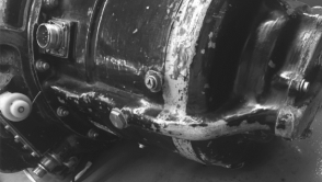 壳体表面的漆层,局部脱落、鼓包、脱皮和掉块面积超过一定比例时,一般采取对整个漆面重新喷涂的方式修复,图2-12-1所示为油漆脱落的附件壳体。可以采用吹砂的方式将旧漆吹磨掉,部分零件也可以采用化学法除漆。吹掉所有漆层后用汽油洗净,压缩空气吹干,对表面进行氧化处理。然后对原漆层表面重新喷、烤漆。由于漆的自然固化特性,常采用现用现配的方式,称取适量的清漆,将清漆稀释到适量的浓度,均匀搅拌,一次用多少配多少。根据需要用铜丝网对稀释后的油漆过滤,确保漆的色泽一致、厚度均匀。壳体修理后试验,二次装配后,在规定位置标记零、部件寿命,无规定位置的,则在壁厚且醒目的位置标记。