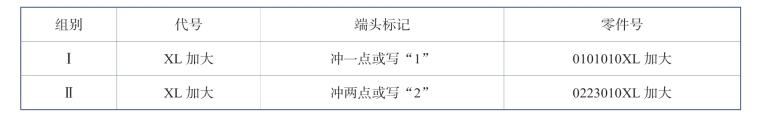 (1)直径加大螺桩。直径加大螺桩属于过盈螺纹,在制造时按直径大小划分为两组,一组小、一组大,标记为冲点,Ⅰ组打一个冲点,Ⅱ组打两个冲点,其代号则是在原螺桩图号后面标注“XL加大”字样,见表2-12-1。