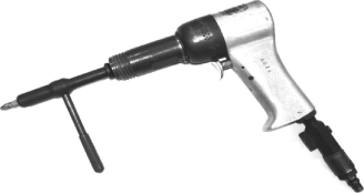(5)振动螺刀。振动螺刀包括铆枪和螺刀杆,铆枪是冲击部分,螺刀杆是旋转部分,如图2-12-6所示。螺刀头可更换。使用时,将螺刀杆配以合适刀头放入铆枪的铆头安装孔,接上气源,利用铆枪的振动对紧固件敲击,松动螺纹间的锈蚀、杂质。用扳杆旋转螺刀杆拆下螺钉。注意使用此方法时要控制好振枪,避免伤及机件。