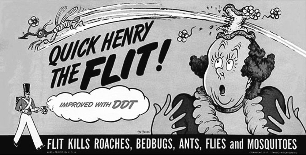 图3.3.7 二战前和二战后,家用喷雾枪中加入滴滴涕。此为西奥多·S.盖泽尔(即苏斯博士)为其创作的广告配图