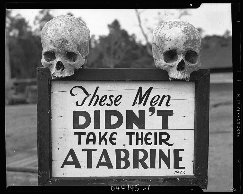 于是,加强控制战场上的疟疾疫情成为了首要任务。军方空投宣传手册将疟疾的危险性告知士兵。一本培训小册子上说:“疟疾和毒气一样,引发病痛且难以治愈。它会让你变得虚弱无力,一无是处。”在新几内亚,为了对付拒绝执行疟疾防控措施的大男子主义行为,一位机智的澳大利亚中士张贴了标语:“保持男性雄风!疟疾导致阳痿!”美军军官迅速如法炮制了这一策略,成效明显。