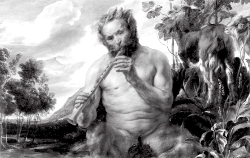 潘,古希腊神话中的牧神,掌管山林、田园和羊群。他长相奇特,有着人一样的头和身躯,山羊一样的角、腿和耳朵。半人半羊的潘既象征着创造力、音乐、诗歌和性爱,同时也是恐慌与噩梦的标志。在罗马神话中,他又名福纳斯。