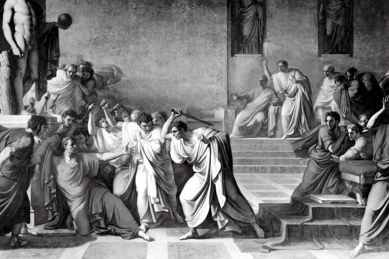 恺撒的独裁统治,引起了支持共和制的元老院贵族的极大不满和仇视。为了维护自身岌岌可危的权力与地位,众多元老院议员串通起来,密谋暗杀恺撒。公元前44年3月15日,布鲁图斯和卡西约为首的元老院议员在议会上刺杀了恺撒,恺撒身中23刀倒在其政敌庞培的塑像脚下。