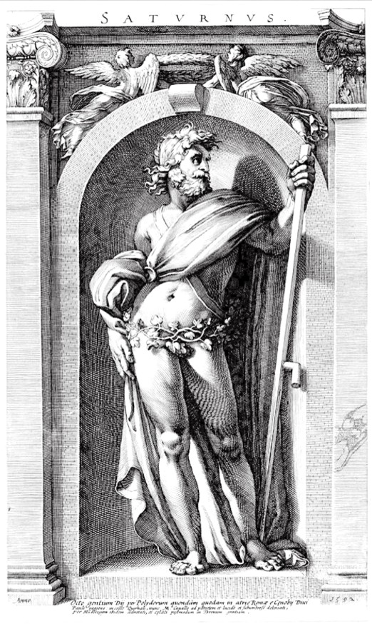 萨图恩,古罗马神话中的农业之神。他掌管播种,教人耕种,培植果木。萨图恩虽为古罗马最古老的神祇之一,但是古代罗马人对他的来历也不甚清楚。当宙斯的化身——朱庇特成为罗马神话的核心之后,由于人们将罗马神话与希腊神话相混淆,萨图恩便与希腊神话中的宙斯之父克洛诺斯混同,被视为朱庇特之父,成为一个带着邪恶色彩的古神。