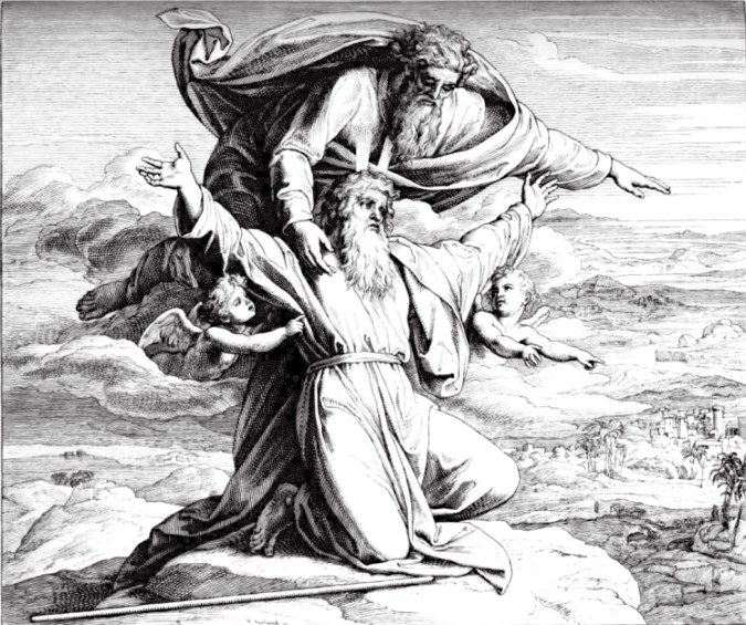 按照《创世记》的说法,由于以色列人的抱怨,摩西也曾经对上帝产生怀疑。上帝为了惩罚摩西,在摩西带领以色列人靠近迦南圣地的时候,带着摩西在毗斯迦山上某一处遥望迦南,指给他应许之地,但是同时告诉他,在他的有生之年,他不得进入迦南。据传,摩西在临死前遥望了一眼迦南圣地,然后永远地闭上了眼睛。
