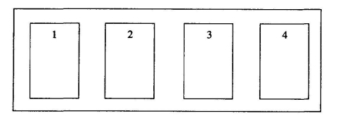 在一个馆内同时有两个以上的场地时,就应将场地编号,场地号最好挂在主裁判员椅的两侧。如果在一个馆内同时要安排若干片球场,那么最好将这些球场平行安放,以使球员在比赛中视线不易受到其他场地的干扰,以一个馆内安排四片球场为例,如图11所示。