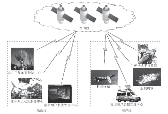 北斗系统由空间段、地面段和用户段三个部分组成,具体如图3-17所示。