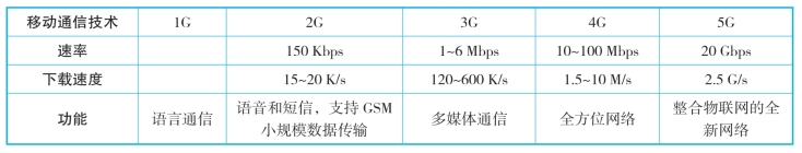 从表4-2中的数据可以看到:从2G过渡到3G,通信速率大约增长了30倍;从3G过渡到4G,通信速率大约增长了17倍;从4G过渡到5G,通信速率大约增长了256倍。