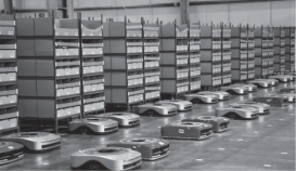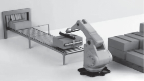 目前,机器人技术越来越多地被应用于物流的装卸搬运作业中,如机器人叉车、码垛机器人(见图9-8)、搬运机器人(见图9-9)等,直接提高了物流系统的效率和效益。搬运机器人可安装不同的末端执行器来完成各种不同形状和状态的工件搬运工作,目前已被广泛应用于工厂内部工序间的搬运、制造系统和物流系统连续的运转以及国际化大型港口的集装箱自动搬运。