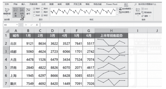 迷你图就是放置在单个单元格中的小图表,可以在单元格中用图表的方式来呈现数据的变化情况。当有多组数据需要分别查看数据趋势,但分别作图又很麻烦,且将多个数据图放在同一个表格又显得杂乱时,就可以考虑使用Excel的迷你图可视化功能。迷你图的趋势效果如表10-3所示。