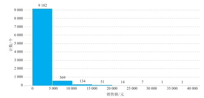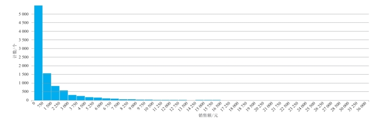 产品销售额分布是查看和分析客户一次性购买产品花费的费用区间,可以用直方图来表示。