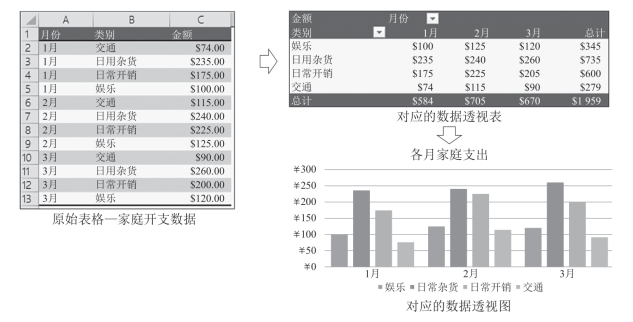 动态透视图,就是通过Excel的数据透视表和数据透视图,实现多维数据的汇总与可视化。数据透视表从Excel 2010开始增加了切片器功能,从Excel 2013开始增加了日程表功能。切片器和日程表都可以更快速直观地实现对数据的筛选操作。数据筛选步骤如图10-3所示。