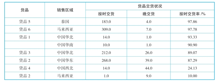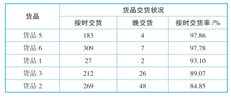 从表12-16中可以发现,货品2交货情况问题非常突出,其他货品相对较好。