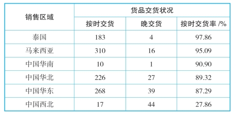 从表12-15中可以发现,中国西北地区存在突出的延时交货问题,急需解决。