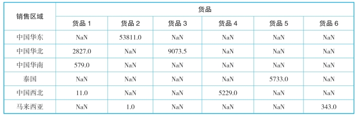 货品1有三个销售区域,分别为中国的华北、华南和西北。货品2有两个销售区域,分别为中国华东和马来西亚。其他货品有一个销售区域。