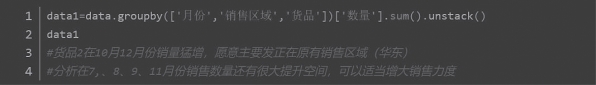 (2)对于是否存在尚有潜力的销售区域问题,从三个不同的维度进行分析,包括:月份维度、销售区域维度和月份与销售区域结合的维度。