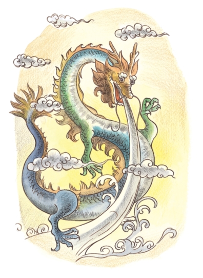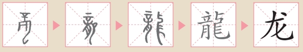 龙是中国古代神话传说中的动物。据说,它具有神性,可以变大变小,变长变短,会飞翔,会潜水,不但来去自如,而且还会呼风唤雨。古人想象中的龙,头顶有肉冠,有两只像鹿一样的角,有耳朵,有大嘴和长胡须,有四肢,脚上有爪,背上有鳞片。“龙”字就是依照古人想象中的龙的形体造的,左边画着龙头和龙身,右边画龙的脊背和背上的长毛。