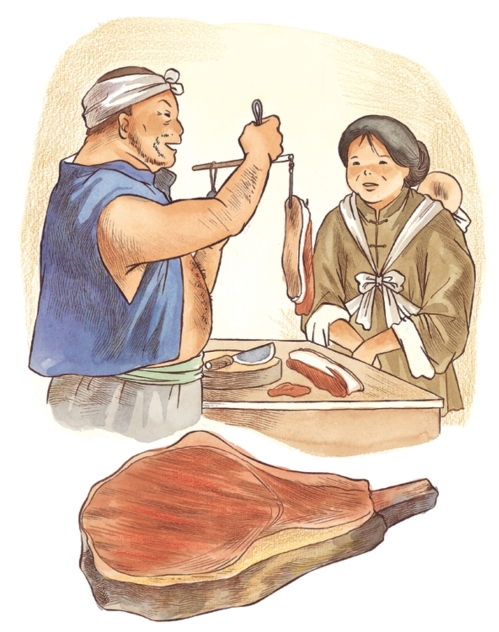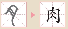 ” 表示肉的纹理。后来,“肉”字的意思扩大,并不仅仅是指鸟兽的肉,凡是果蔬的皮下、核外等可以食用的部分,也可称为肉。