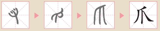 ”。演变到金文时,字形看起来就更像鸟兽爪子的样子了。