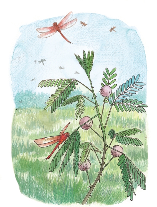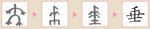 你用手去碰触过含羞草的叶子吗?当你碰到它的叶子时,因为水分由叶柄向四下流散,叶子变重,所以就闭合下垂。“垂”字的字形,就是植物花叶下垂的样子。
