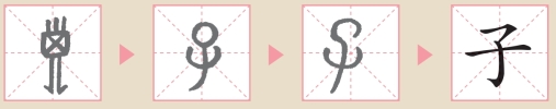 ”是婴儿的大头,因为在婴儿的身体构造中,头占的比例较大;下面则是婴儿的脚。演变到金文时,“子”字写作“