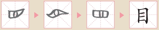 “目”就是眼睛。眼睛是心灵的窗户,可以传递多种情感。所以古人要看人是不是善良,就通过看他的眼珠子是清澈祥和,还是混浊闪烁来判断。“目”是一个象形字,画的是眼睛的外观,有眼眶、眼白和眼珠,本来是依照眼睛的外形写作横的,后来则转了九十度变成了直的,也就成为现在的“目”字。