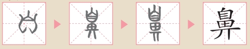 人常常指着自己的鼻子来表示“自己”的意思,所以古文的“自”字就是依照鼻子的外观造的,有鼻根、鼻梁、鼻尖、鼻孔和鼻翼。后来“自”被借用当作“自己”的意思,所以就在“自”的下面,加一个表示声音的符号“畀” 来表示“鼻”。