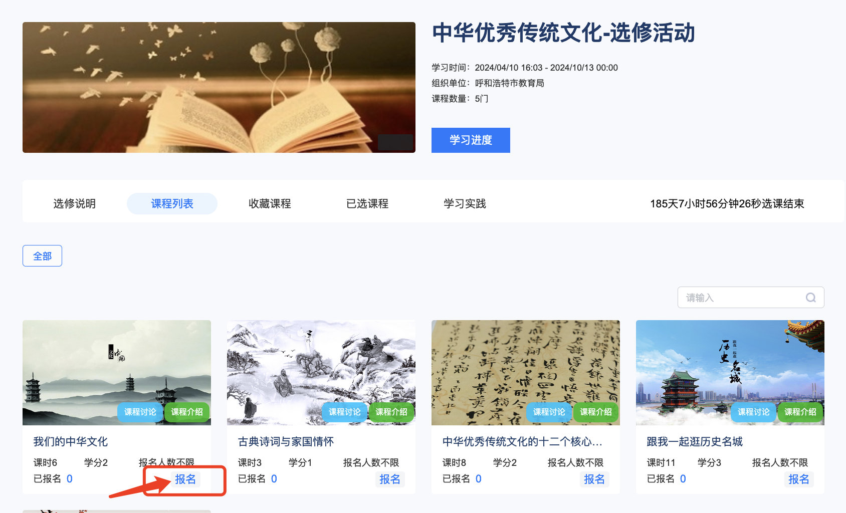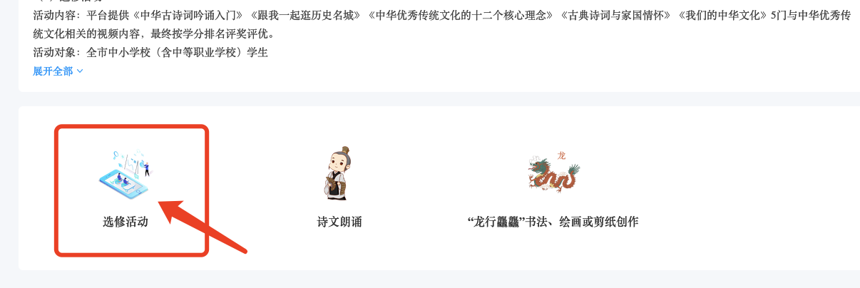 “文学阅读”及“中华优秀传统文化”中均有“选修活动”模块,参与方式相同。