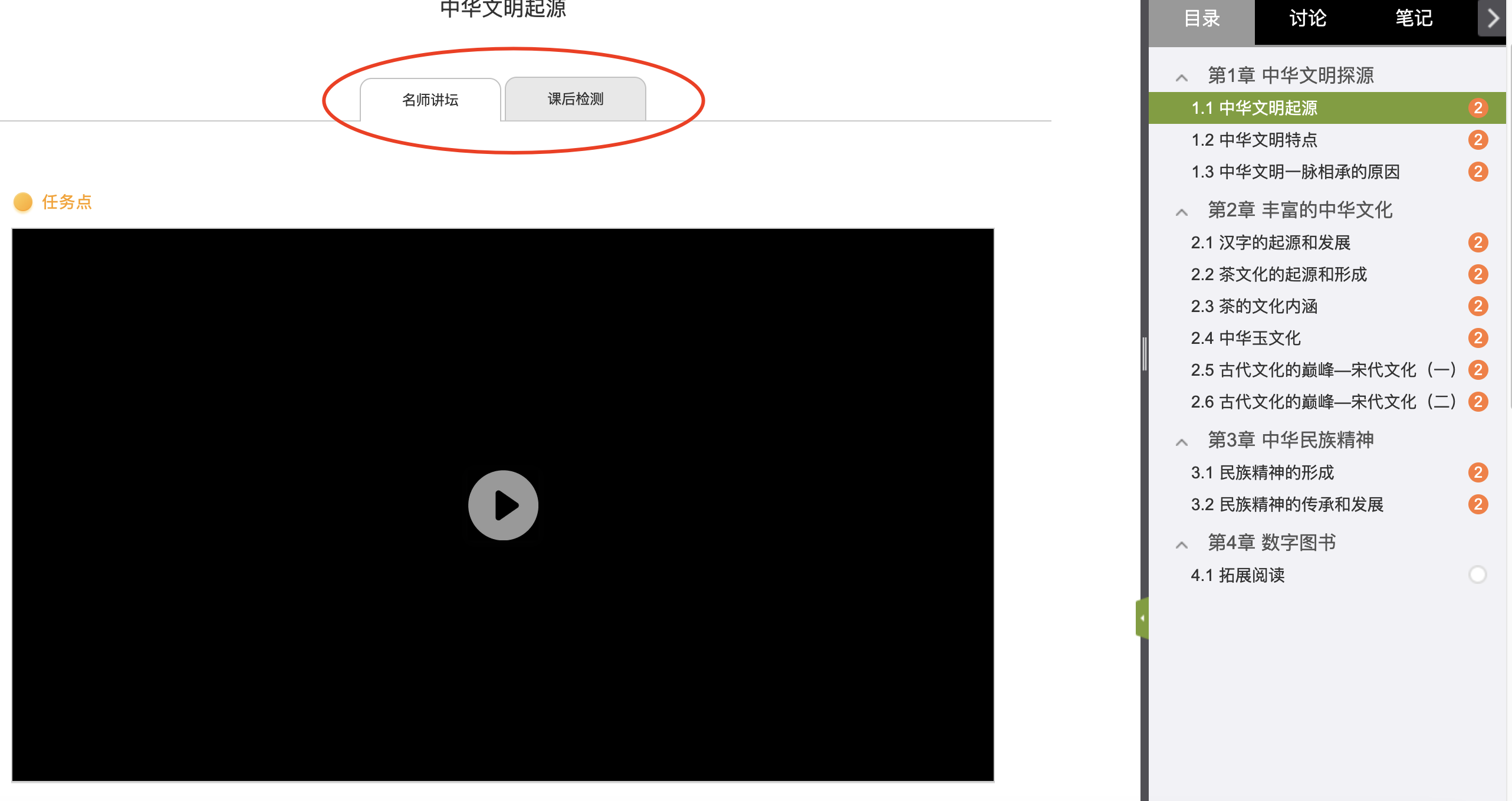 3、开始学习即可(一些章节中有测验需完成,课程达到60分可获得学分)