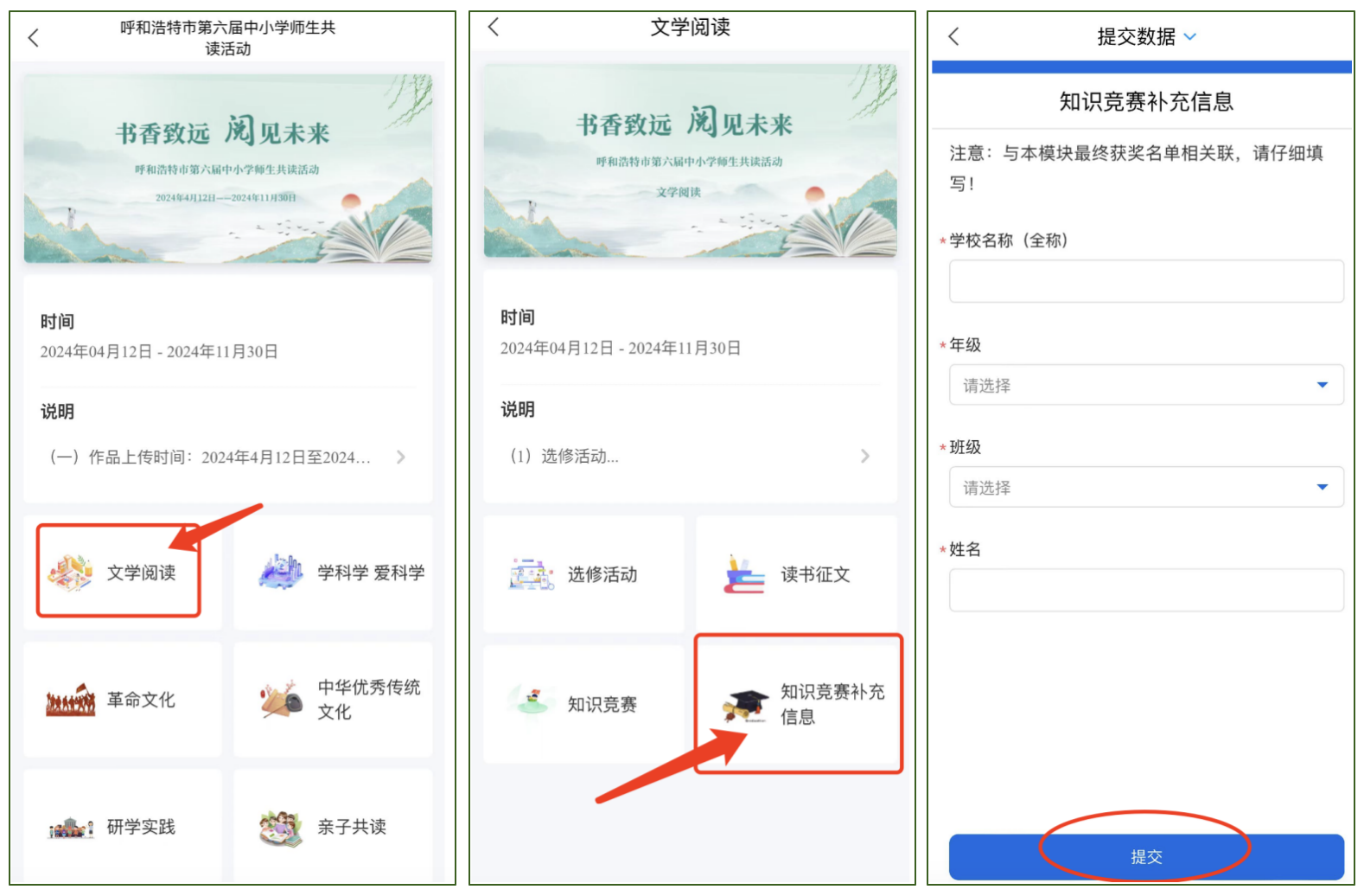 文学阅读——知识竞赛,参与流程如下: