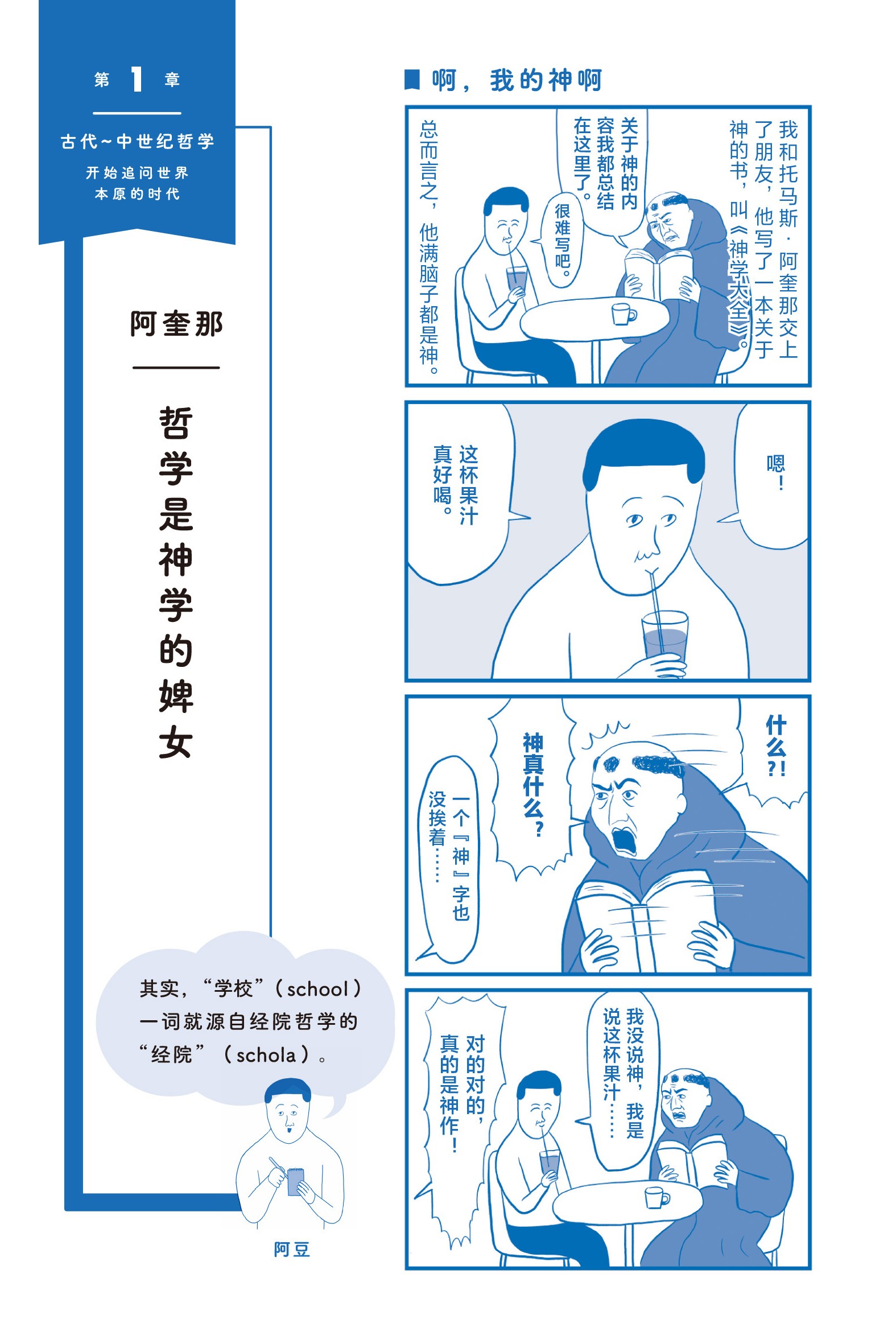 托马斯·阿奎那出身于意大利南部的贵族家庭,是一位身材魁梧、学识渊博的神学家。但我觉得他肯定对哲学一见钟情,不过这在彼时可是禁忌之爱,所以他必须用一些方法骗过神的眼睛。