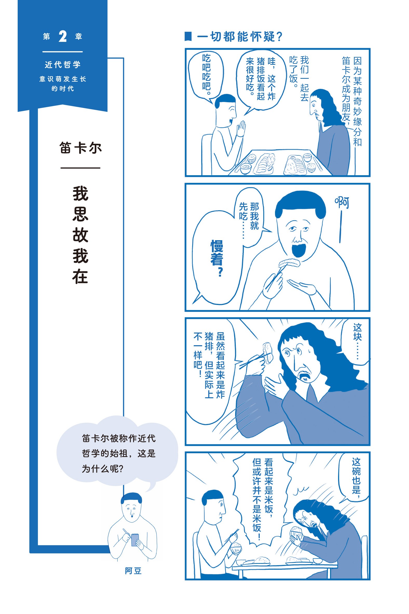 他通过一种被称作方法论上的怀疑的、彻底怀疑一切事物的策略,将思考推到了“等一下!我不能怀疑我正在怀疑”的高度。