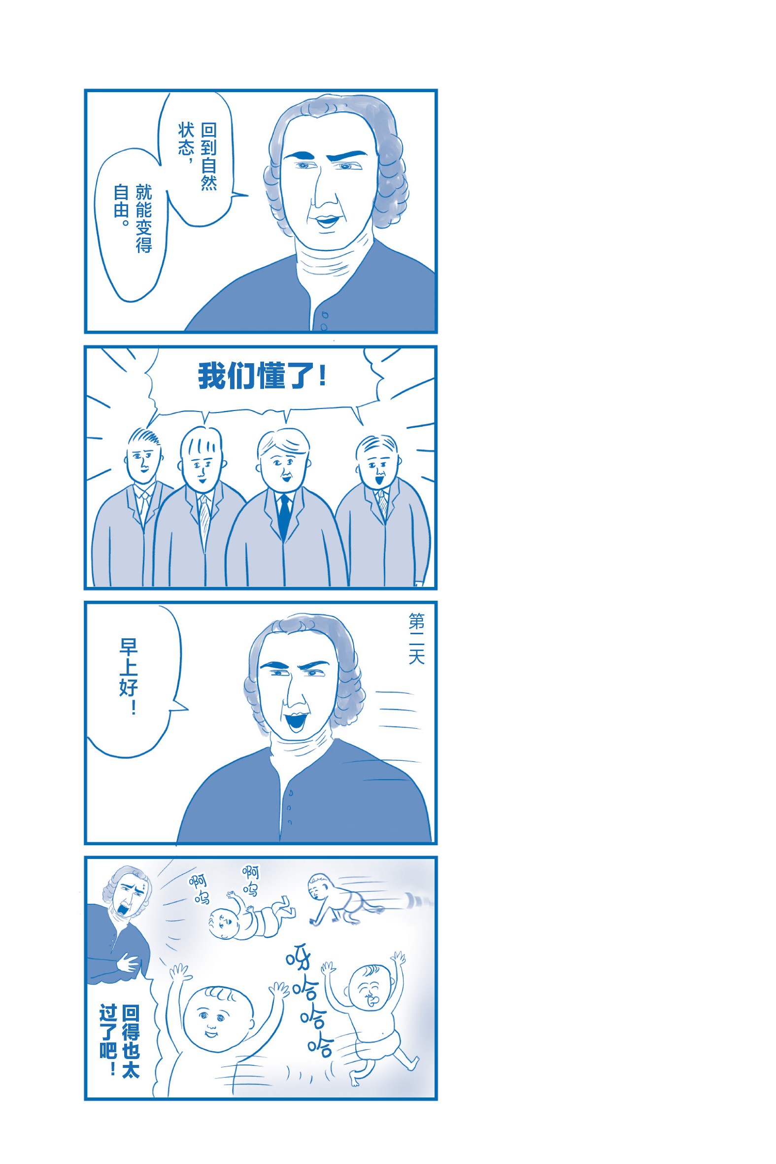“回归自然”也是对文明所造成的不平等的批判。我们在自然中原本不是平等的吗?要说不平等的问题在哪里,那就是阶级剥夺了自由。富人拥有自由,穷人的选择却极为有限,这是不正常的,因此卢梭呼吁大家回到自然状态,去尝试夺回自由。