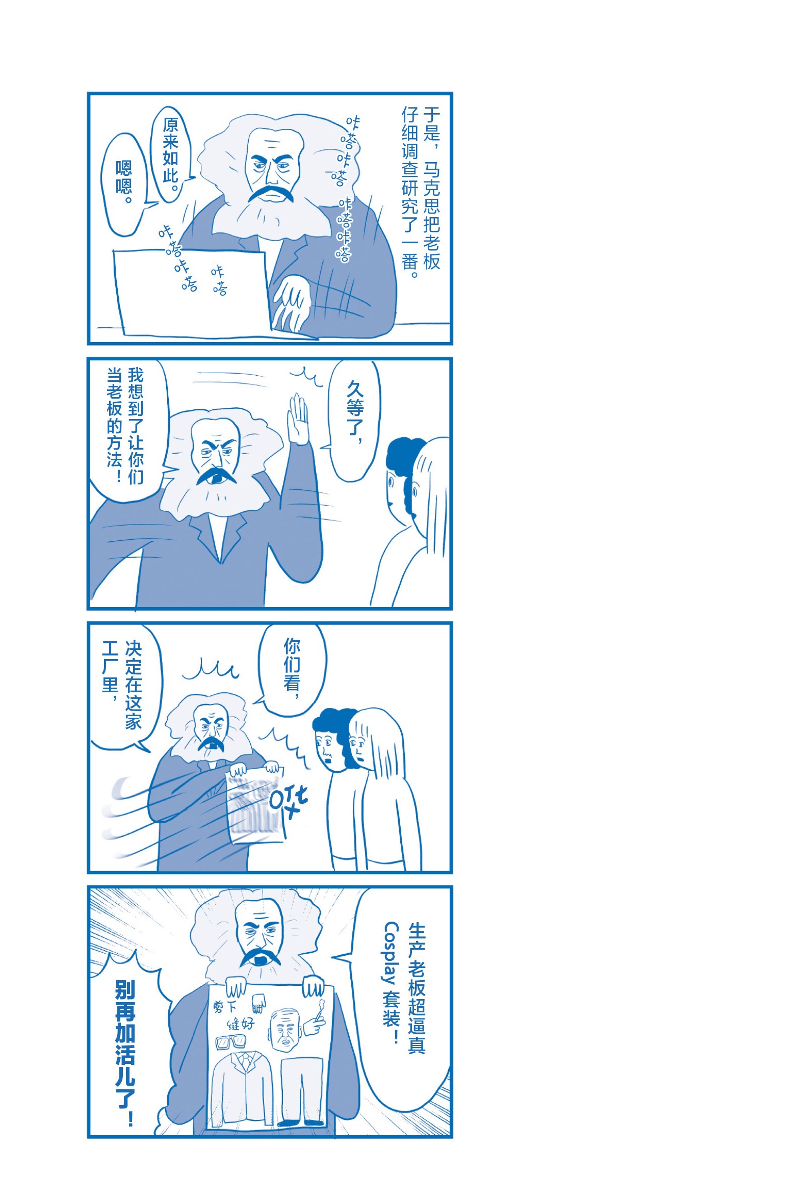 譬如一家工厂,如果它为老板所私有,那么你再怎么工作,工资都是由老板决定的。所以马克思呼吁工厂这些“生产资料”应当为众人所有。这样一来,多余的利润就能分配给大家。