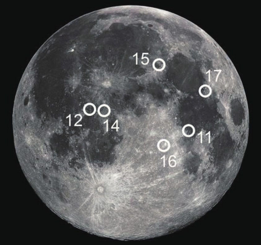 “阿波罗”计划总共进行了11次载人太空飞行,并实现了人类登月的梦想。前4次飞行测试了“阿波罗”计划中使用的设备,随后7次飞行中有6次在月球着陆(图1-6),其中“阿波罗-13”号因为氧气罐爆炸,取消了登月,最终宇航员安全返航。