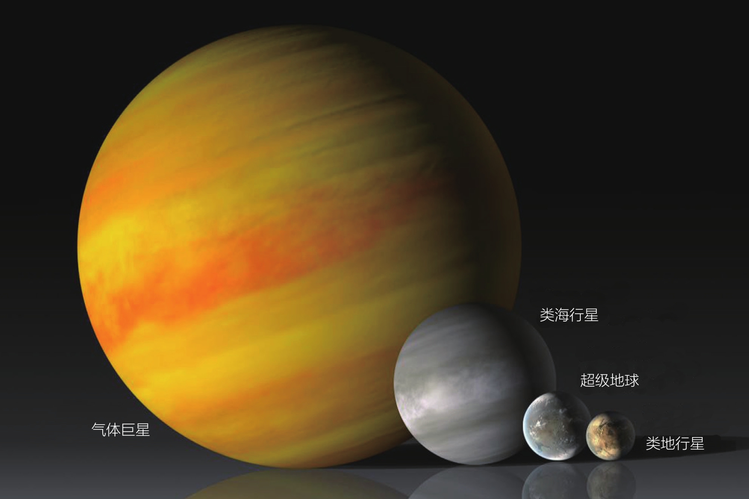 最早发现的系外行星都很大,在距离主星很近的轨道上公转,表面温度很高,被称为“热木星”。天文学家对此感到惊讶,因为根据行星形成理论,巨行星只能在离恒星很远的地方形成。随着更多其他类型的系外行星被发现,现在已经明确,热木星只是系外行星中的一部分。系外行星千奇百怪,有水世界、熔岩行星、蛋形世界,以及有多个太阳的行星,甚至还有流浪的行星——它们没有自己的太阳!天文学家主要依据大小和质量,把系外行星分为4类:气体巨星、类海行星、超级地球、类地行星。在已经确认的系外行星中,气体巨星占31%,类海行星占35%,超级地球占30%,类地行星占4%(图5-5)。