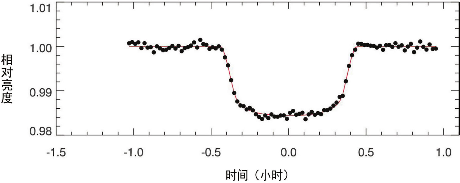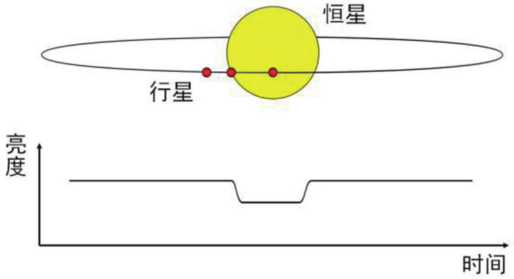 系外行星从宿主恒星面前通过时,恒星的视亮度会发生变化(图5-11),科学家以此搜寻系外行星,这种方法叫作凌星法(Transit),后来用这种方法探测到了大量系外行星。