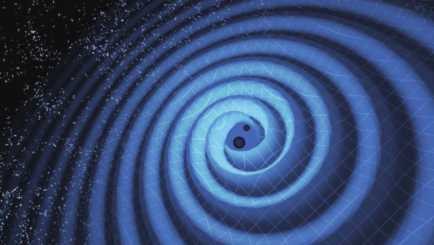 1915年,爱因斯坦提出了广义相对论,预言存在引力波——时空结构中的涟漪(图7-11)。但是引力波极其微弱,需要精度极高的探测器才能发现。2015年9月14日,激光干涉引力波天文台(LIGO)有史以来第一次探测到引力波事件GW150914,人类对宇宙的探索由此进入了一个新纪元。该引力波事件发生点距离地球13亿光年,两个分别为36倍和29倍太阳质量的黑洞,合并为一个62倍太阳质量的黑洞。大约3倍太阳质量的物质在1秒内转化成引力波,其峰值功率是整个可见宇宙总功率的50倍。
